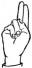 На ћирилици написано БРНЧА ПОСТОЛОВИЋ састоји се из 15 слова [?]. Исписано ћириличном једноручном азбуком за глувонеме: